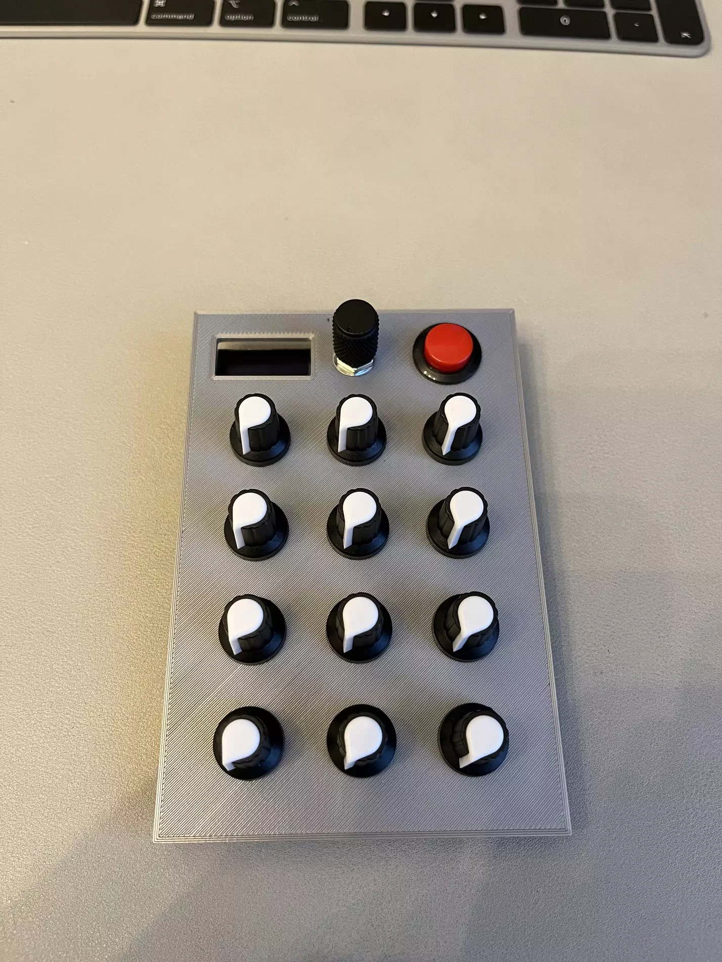 After some experimentation I decided to simplify the device: remove the screen and have 12 knobs mapped to arbitrary undefined MIDI CC messages. To make it more interesting I added two buttons for automation: