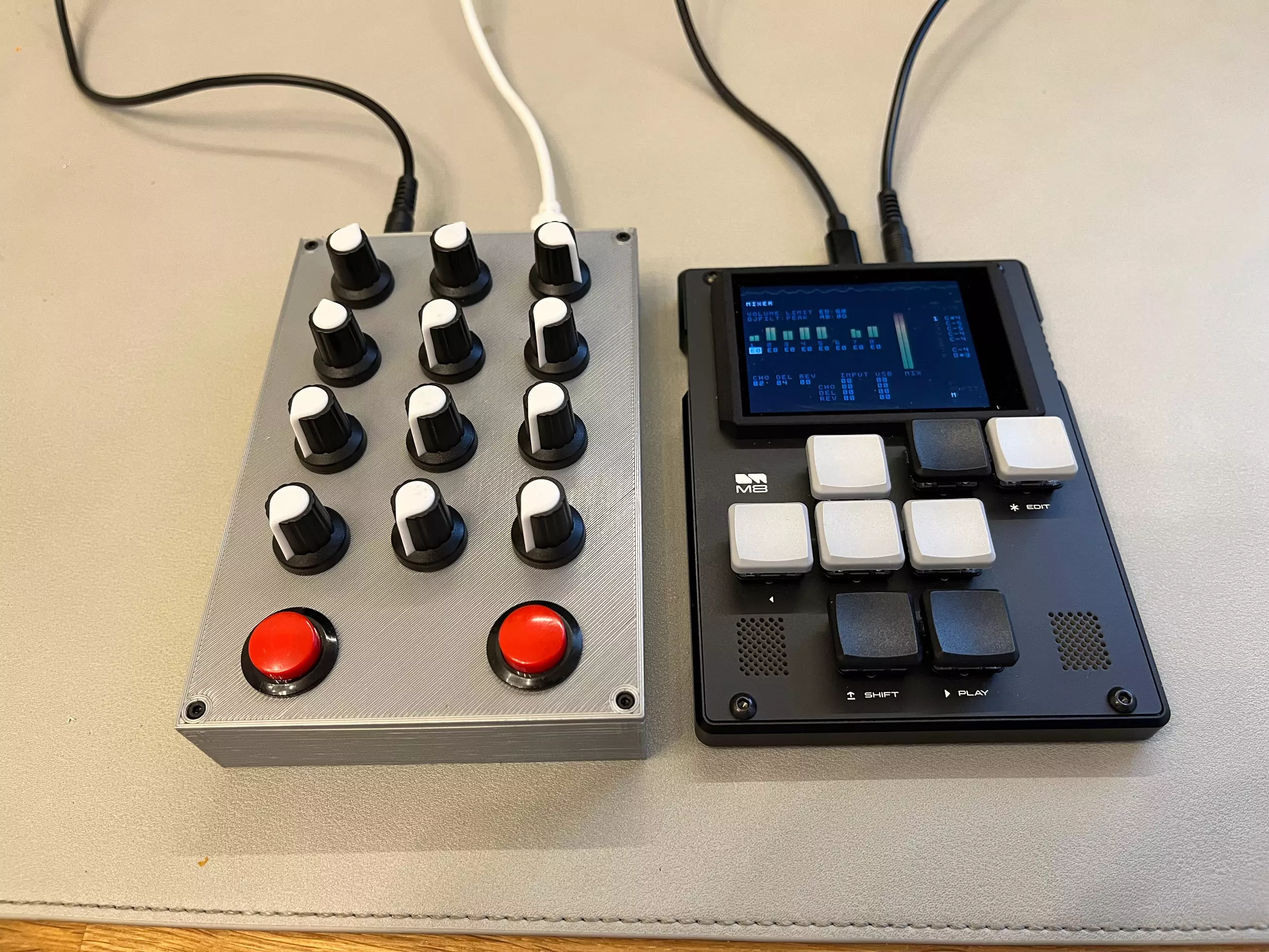 In my previous post I mentioned getting a Dirtywave M8. It’s pretty small and doesn’t have a lot of buttons, so working with the device needs a lot of key combinations to move through different screens and options. Getting the hang of the workflow is actually quite easy, but the interface is pretty limited if you want to perform or just jam with the device.